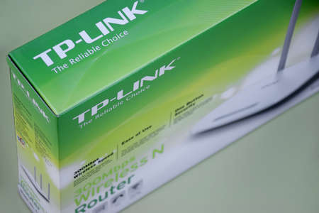Kharkiv, Ukraine - June 17, 2022: Green box home router TP Link TL-WR845N.