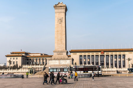Beijing China 09.02.2020 Monument to People Heroes Tiananmen Square national monument to the martyrs of revolutionary