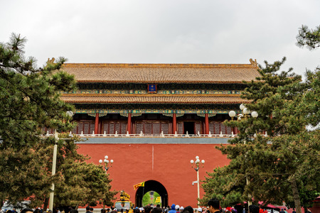 Beijing / China - March 25, 2015: The Tiananmen, Gate of Heavenly Peace, entrance to the Palace Museum (Forbidden City) in Beijing, China