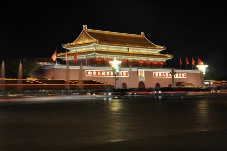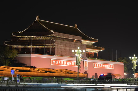 Illuminated night view of Beijing's Tiananmen Tower