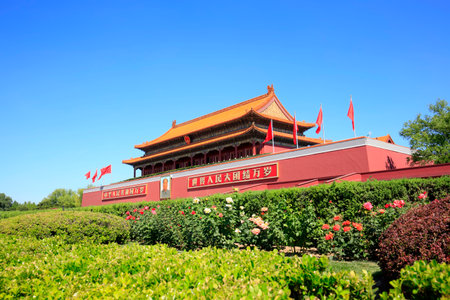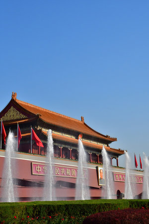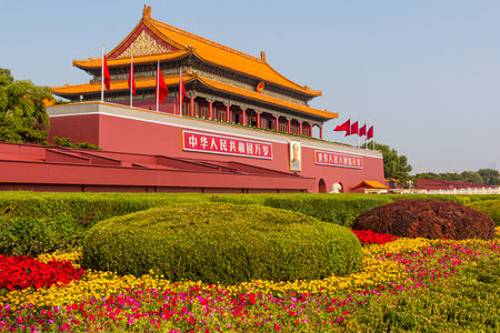 BEIJING, CHINA - SEPTEMBER 26, 2016:The Gate of Heavenly Peace at one of the most famous squares in China, Tienanmen square