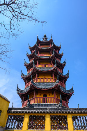 Nanjing, China - June 3 2015. Buddhist temple and pagoda in Nanjing. The old southern capital of China.