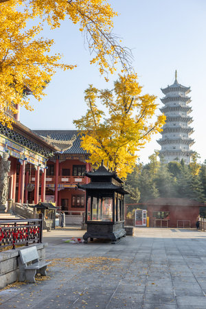 NANJING, CHINA - NOVEMBER 10: View of a traditional Chinese pagoda at Niushoushan Cultural Tourism Zone on November 10, 2019 in Nanjing