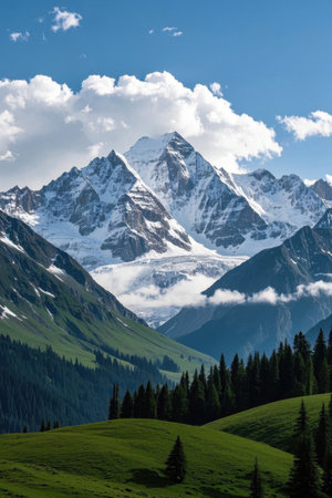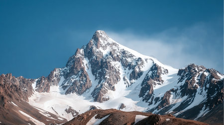Majestic Snowy Mountain Peak Basks in Bright Sunlight, Offering Stunning Alpine Scenic Views