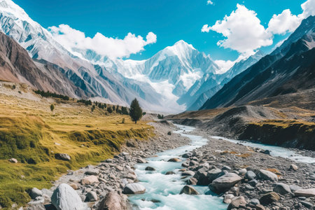 mountain landscape on a sunny day. calm frosty relaxing background image. Generative AI