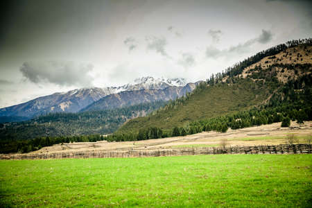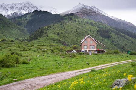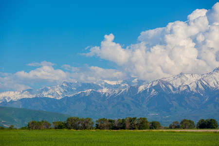 Beautiful mountain landscape. Wildlife Kyrgyzstan. Clouds in the sky. Kyrgyzstan