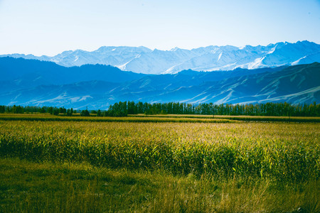 Grassland and mountains in a sunny day. Shot in Xinjiang, China.