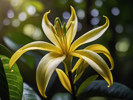 Nectar-filled tropical flower amidst lush green leaves