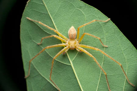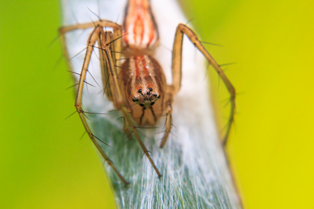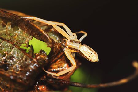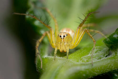 Close up of Lynx spider on green leaf and nature background, Thailand.