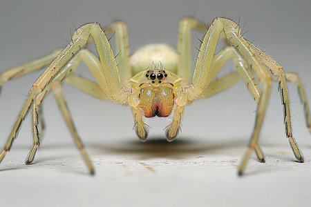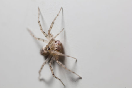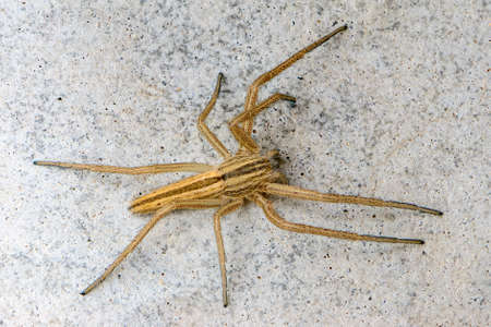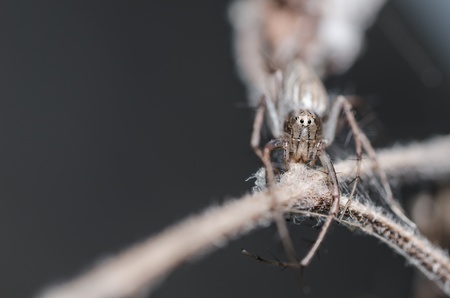 Extreme macro shot of a domestic house spired crawling on a wall.