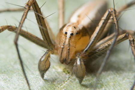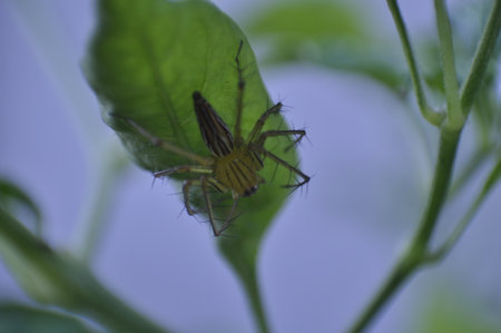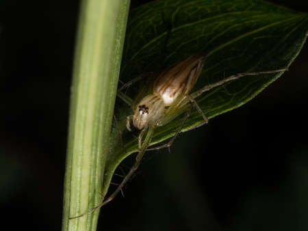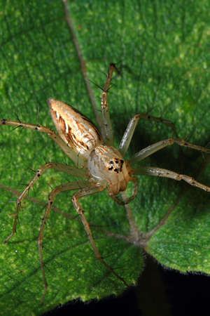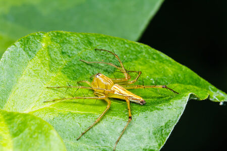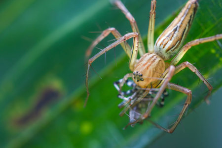 Striped lynx spider on leaf garden striped lynx spider in indian village image yellow spider image