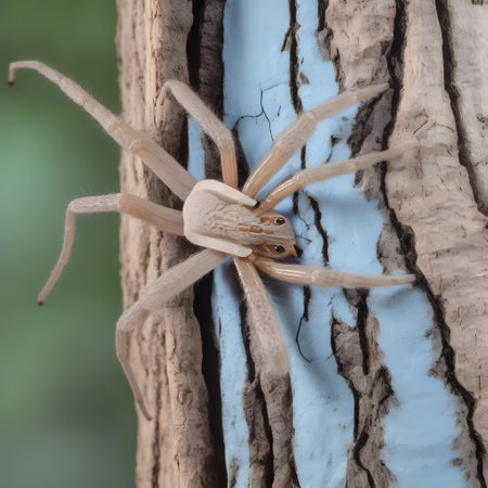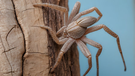 camouflage Two-tailed spider is calmly staying on the tree bark