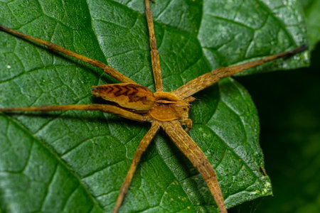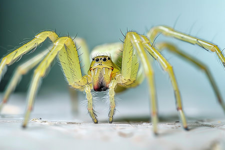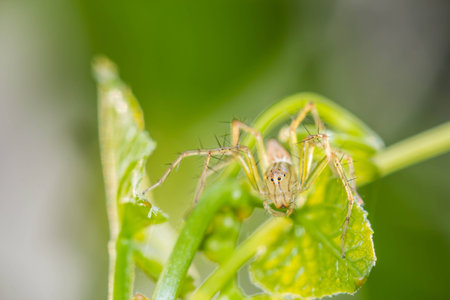 Close-up of a lynx spider standing on a vibrant green leaf, showcasing its intricate features and delicate legs, macro photography and don't have generated by AI.