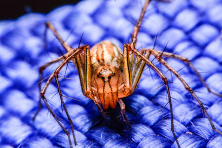 A Shallow focus Macro shot of a spider standing on a blue ground