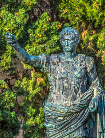 Bronze sculpture of Roman Emperor Caesar Augustus in the Forum in Rome