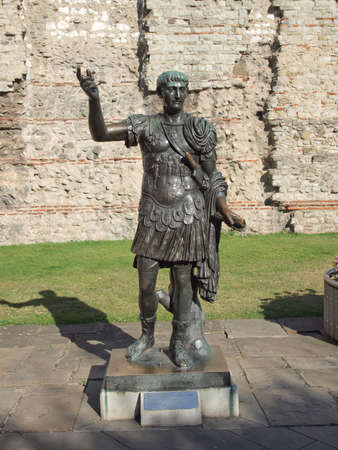 Bronze statue of the roman emperor Trajan. London, England, Europe