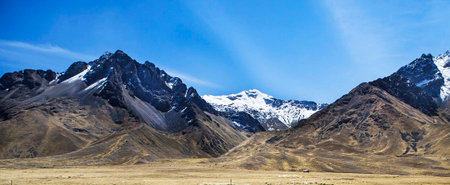 Mountain landscape with snow and waterfalls in Cordillera Blanca, Peru