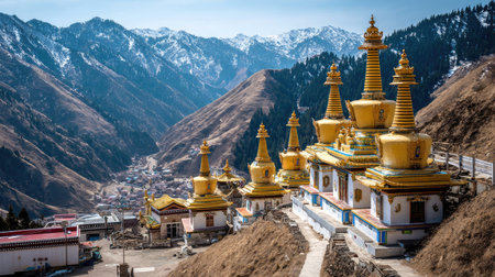 Sichuan, China - Aug 18, 2016. Golden stupa of Yarchen Gar in Garze Tibetan. Yarchen Gar is one of the largest congregation of monks and nuns, with over 10000 devotees.