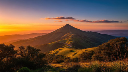 Majestic Mountain Range View at Sunrise with a Light Haze