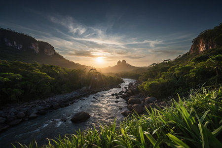 Sunset in the mountains of Rio de Janeiro, Brazil, South America