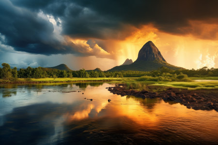 Storm's Approach: Captivating View of Glass House Mountains, Sunshine Coast, Queensland, Australia