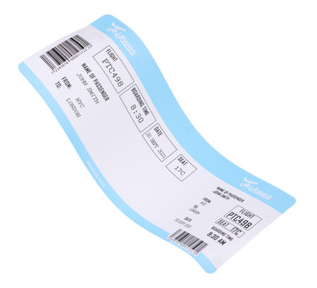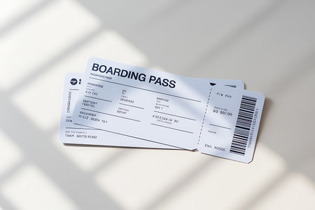 Two boarding pass tickets with shadow on white background. Travel concept.