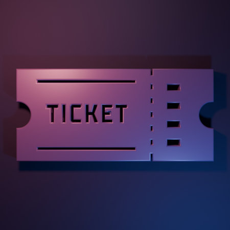 Purple Ticket icon isolated on purple-blue background. Minimalism concept. 3D render illustration.