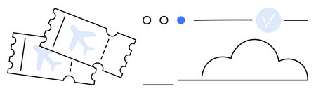 Two airline tickets, cloud icon, and verification mark. Ideal for travel, booking services, cloud storage, secure transactions, airline industry logistics and user verification. Line metaphor