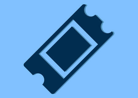 A ticket flat icon design isolated on plain blue background.
