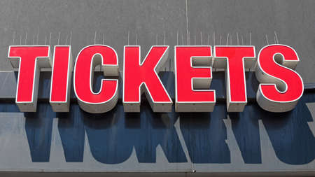 Big Red Letters Tickets Sign at Building Wall