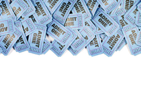 Blue admit one movie tickets top border, copy space