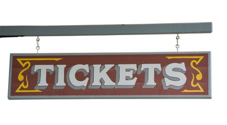 A carnival ticket booth sign isolated over white.