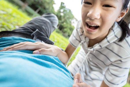 fun and joyous family leisure. dad expressing his love to daughter. happy emotion and enjoyment. parent bond and child laughter.