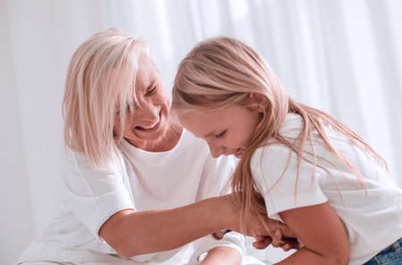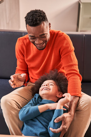 african american woman tickling cheerful daughter while having fun on blurred foreground