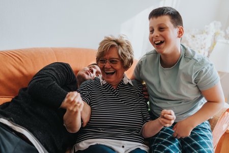 Three Generations Sharing Laughter and Bonding on a Cozy Couch