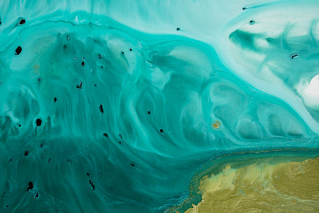 Abstract fluid acrylic painting. Marbled blue abstract background. Hand painted background with mixed liquid blue and green paints. Liquid marble pattern. Modern art.
