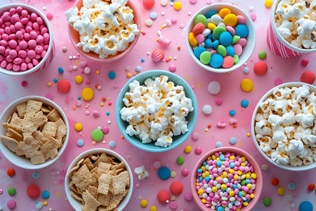 Pink Party Perfection: Delicious Assortment of Gourmet Snacks and Popcorn. Generative AI