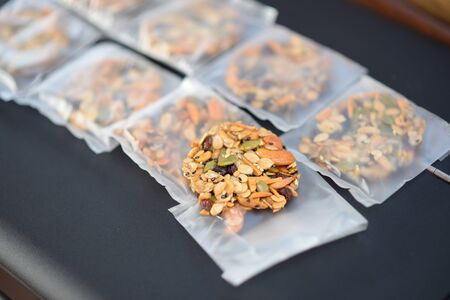 AI Generated. Healthy snack bar with nuts and dried fruits on white plate