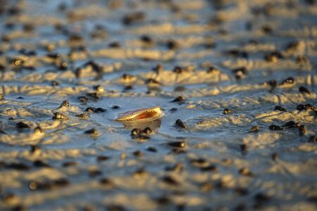Open shell on the beach during sunset on island Koh Samui, Thailand, close up