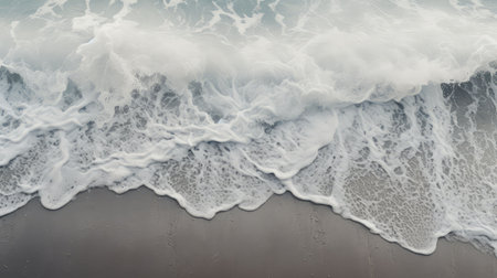 This breathtaking image showcases the natural beauty of foamy waves cascading onto a sandy beach, highlighting the dynamic energy and tranquility of the oceans turquoise waters beneath a