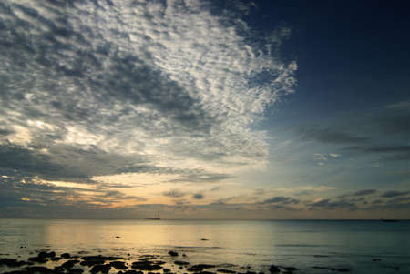 beautiful and dramatic blue ocean in the gulf of Thailand with sunset