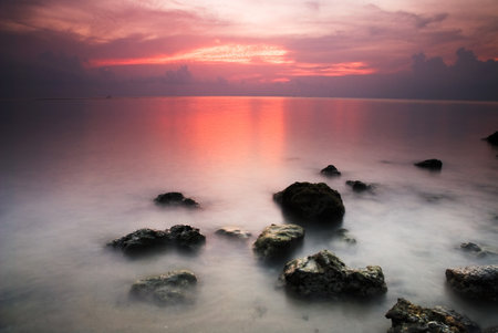 Beautiful view of sunset at Penang, Malaysia. Nature composition. soft focus,blur due to long exposure.visible noise due to high ISO