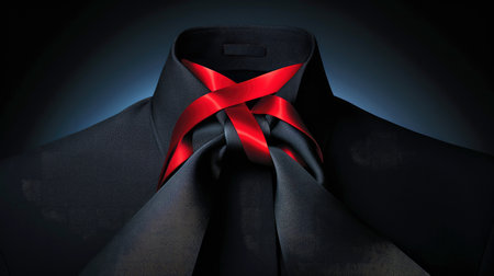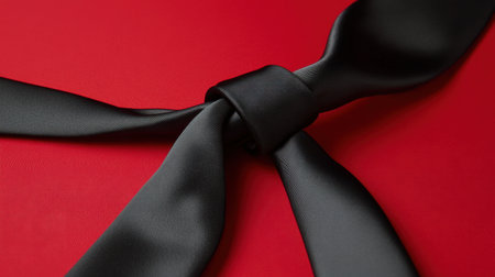 A striking black bow tie elegantly knotted against a bold red background. This image captures the essence of formal attire, perfect for events, weddings, or special occasions.