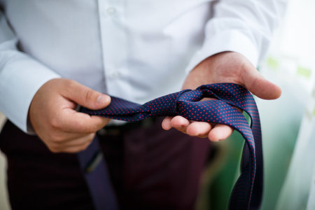 Groom preparation tying a tie