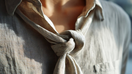 A stunning close-up image portraying a fashionable blouse featuring a beautifully tied bow. The monochrome scheme enhances the elegance and sophistication of the garment.