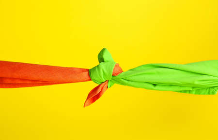 Tied handkerchiefs on color background. Unity concept