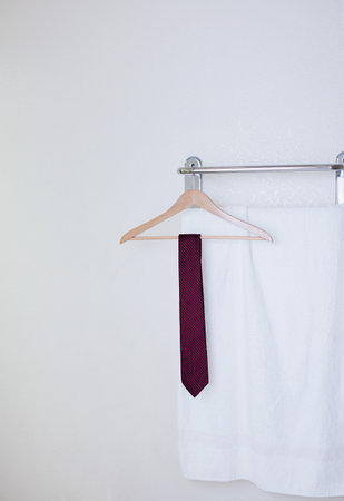 Elegant men's accessories and clothes used for a wedding: sunglasses, white shirt, tie and twins