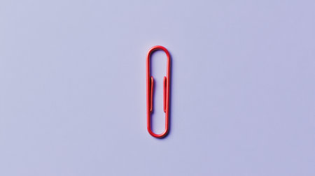 A striking red paper clip positioned centrally against a soft purple background. This image embodies minimalism, showcasing the clip as an essential office accessory perfect for organizers and creatives alike.