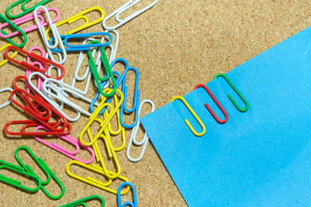 Paper clips on a blue background