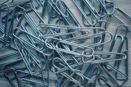 Paperclips group on a blue table.